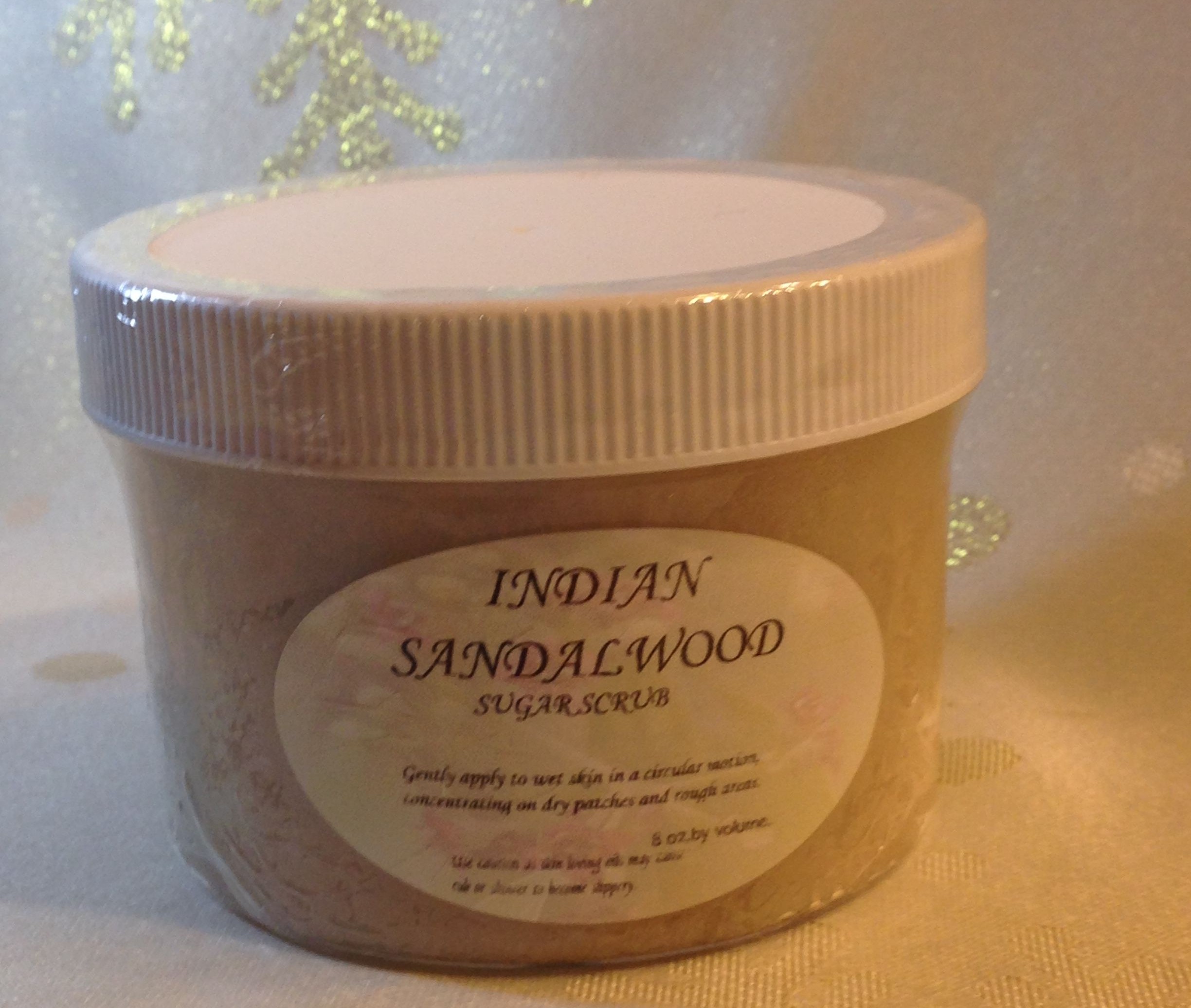 Indian Sandalwood Emulsified Sugar Scrub is not like others in that it is not the gloopy, oily mess we see in retail markets. This is a hand crafted emulsified scrub that is so thick you can turn it upside down without it leaking or spilling out!! And... when used, turns a milky white with the sugar crystals gently ex-foliating your skin to leave you not only silky smooth and soft but smelling wonderful. Gently apply to wet skin in a circular motion with cloth or sponge, concentrating on dry and rough areas. Please use caution when exiting the tub/shower as skin loving oils may leave the area slippery. 8 oz. by volume.